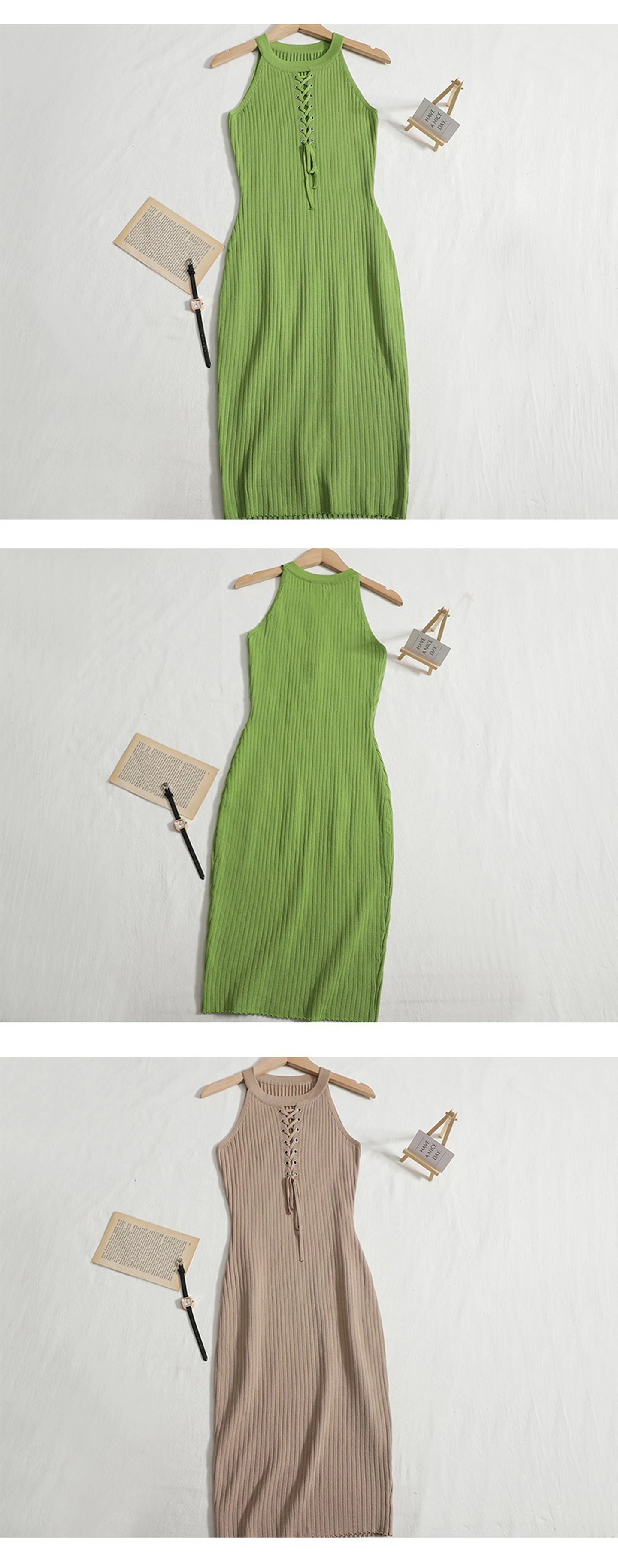 Refresh your summer wardrobe with this sleek sleeveless mini dress, designed for a modern and confident look. Crafted from soft knitted fabric with high stretch, it offers a comfortable slim fit that beautifully follows your natural silhouette. The classic O-neckline and clean solid design create a timeless style that is both simple and effortlessly chic. With its above-the-knee length and flattering empire waistline, this dress enhances your shape while keeping the look light and stylish. Perfect for casual outings, city walks, or social gatherings, it can be easily styled with heels, sandals, or sneakers to create a variety of fashionable everyday outfits.
